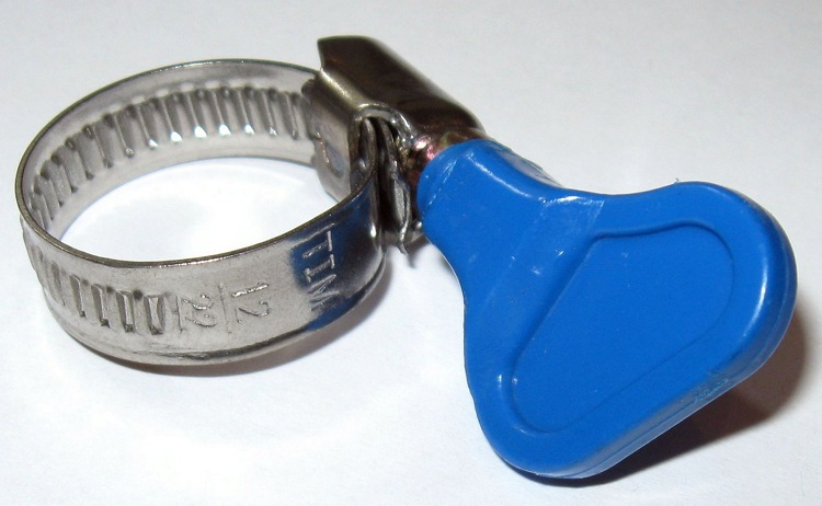 La structure de serrage est très simple - elle se compose d'un ruban métallique et d'une vis pour le serrer