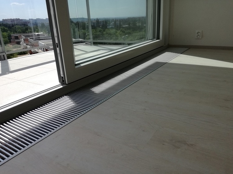 - sous les barreaux du sol le long des fenêtres panoramiques;