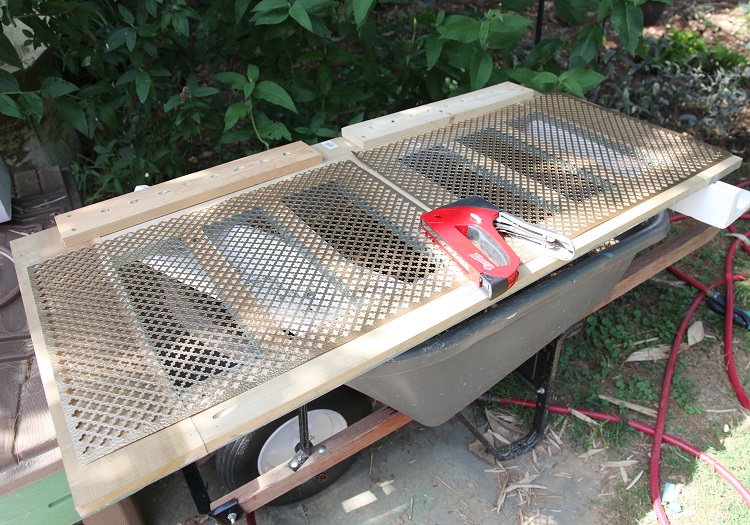 - Ensuite, vous devez préparer le panneau perforé avant. Pour un tel panneau, vous pouvez utiliser une feuille perforée ou une maille perforée. La longueur d'un tel panneau doit être mesurée à l'avance et correspondre à la longueur du coin.