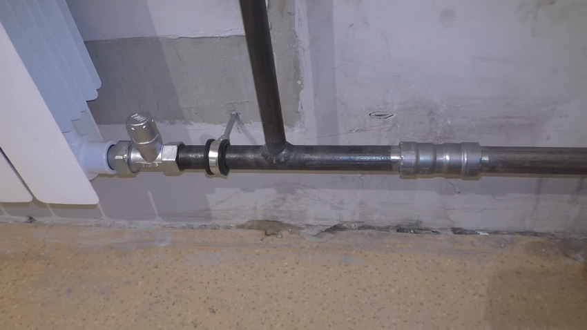 - La dernière étape consiste à connecter la batterie de chauffage. Vous pouvez ouvrir les vannes pour démarrer le liquide de refroidissement, le système doit être articulé étroitement. Nous vérifions à tous les endroits les fuites, dans tous les segments nodaux où il y a des raccords, des raccords.