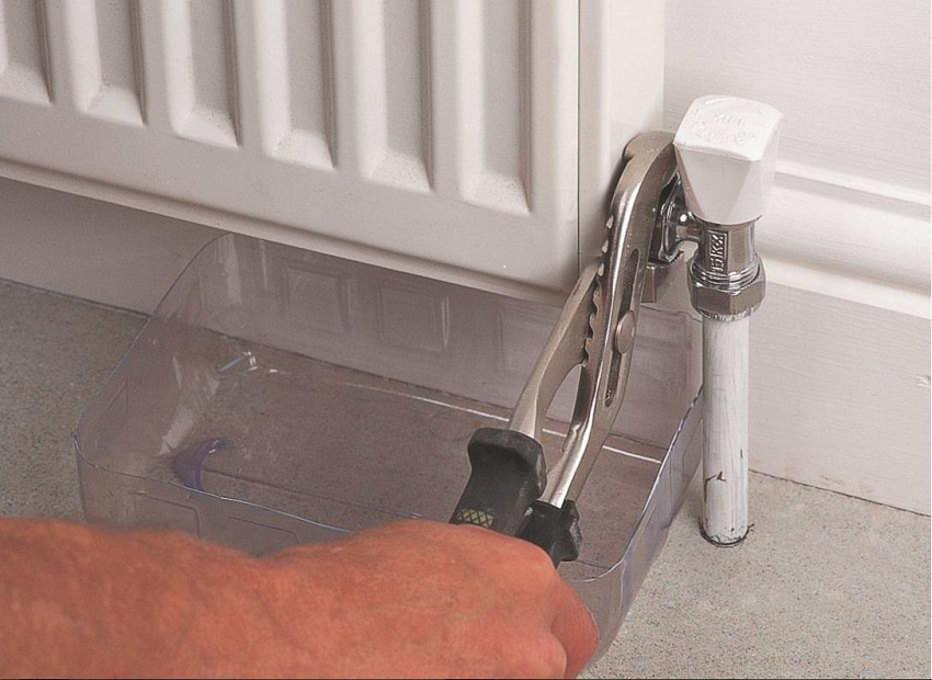 Avant de remplacer les radiateurs de chauffage dans un appartement, il est nécessaire de couper l'eau du système, même si le démontage n'est pas effectué pendant la saison de chauffage. Dans les tuyaux et les batteries, il y a toujours un résidu de liquide de refroidissement, qui est recommandé d'être pompé ou retiré de toute autre manière.