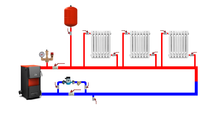 Si le câblage supérieur du coffre est plus souvent utilisé en circulation naturelle, en cas de circulation forcée, il est préférable d'utiliser un système avec un câblage inférieur. Le type de circulation forcée dans le système de chauffage implique l'installation d'éléments dans l'ordre suivant: