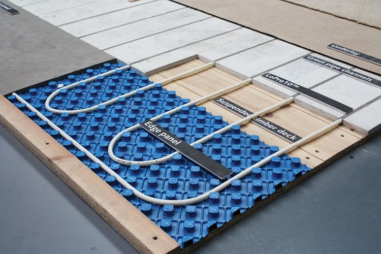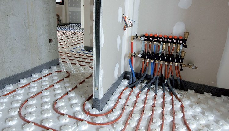 L'objectif principal du système de chauffage par le sol est la distribution de l'énergie thermique dans la pièce par circulation à travers le tuyau d'eau chaude, qui est placé sous le plancher. Le cas le plus courant est la fourniture d'eau chauffée aux tuyaux, mais il est possible d'utiliser une solution d'antigel ou d'éthylène glycol. Des tuyaux en cuivre ou en métal sont utilisés pour le chauffage au sol.