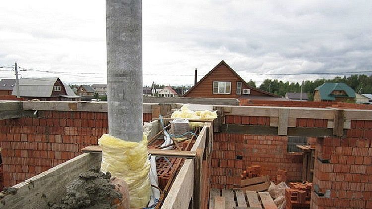 L'isolation thermique est également agencée avec des parpaings spéciaux. Ils font une boîte autour du canal à une distance de 5 à 10 cm, l'espace résultant peut être rempli de scories, de laine minérale ou d'argile expansée.