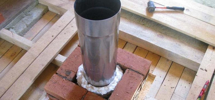 Après vous être assuré que l'isolation a été effectuée correctement et qu'il n'y avait pas de joints non fixés, vous pouvez placer des tuyaux isolés sur le tuyau de la fournaise à travers le trou dans le toit. Après avoir terminé les travaux d'installation pour raccorder la cheminée à la source de chauffage, il est nécessaire de remplir une feuille de métal entourant la colonne montante avec un matériau incombustible. Pour cela, de l'argile expansée, de l'amiante ou de l'argile est utilisée.
