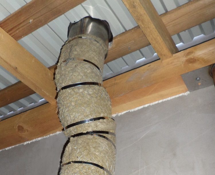 - la cheminée métallique doit être isolée avec une couche de laine de basalte (un type plus pratique de laine minérale) d'une épaisseur d'au moins 5 cm.