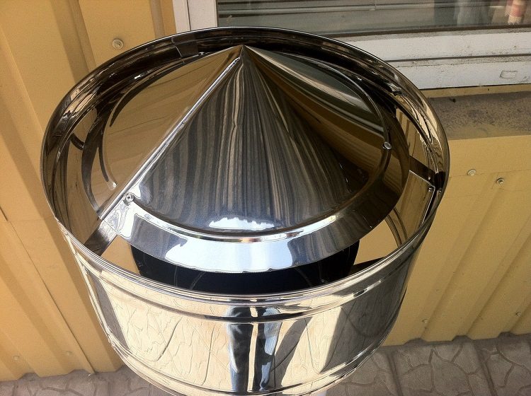 Dans le cas de l'utilisation d'un canal en acier inoxydable, le tuyau de cheminée doit être imperméabilisé par le haut afin que l'humidité ou les précipitations ne pénètrent pas dans le grenier.