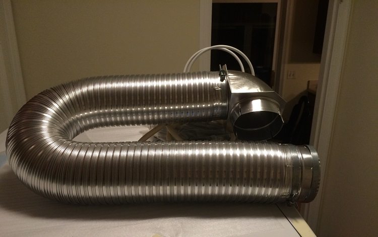 À l'état comprimé, le tuyau en aluminium a une longueur de 650 mm et, lorsqu'il est étiré, jusqu'à 3 mètres. Le ruban métallique peut augmenter le conduit.
