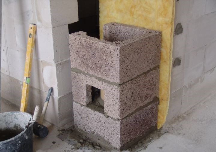 La conception de la cheminée avec un manchon en céramique à la base comprend nécessairement des blocs calorifuges en béton d'argile expansé