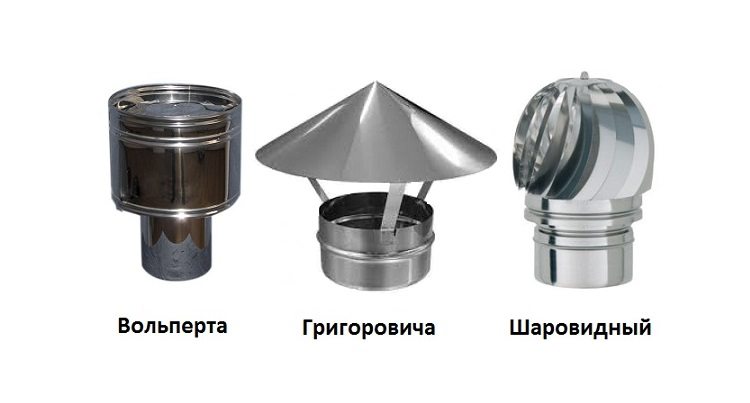 Pour les systèmes de cheminée plus sophistiqués, il est nécessaire de sélectionner une hotte avec un cône pour transporter la fumée et avec un déflecteur intégré. Les différences de têtes selon le type de cheminée résident dans la technologie de montage du capot de protection et les caractéristiques des éléments de fixation.