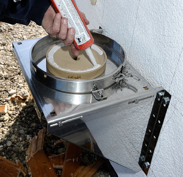 À travers le mur. Cette méthode est effectuée s'il n'est pas possible d'amener un tuyau sandwich à travers le toit. Dans certains cas, les propriétaires ne veulent tout simplement pas «fuir» le toit et s'arrêter à cette option. De plus, la sortie du tuyau à travers le mur est plus sûre, car la majeure partie de la structure est située à l'extérieur de la maison.