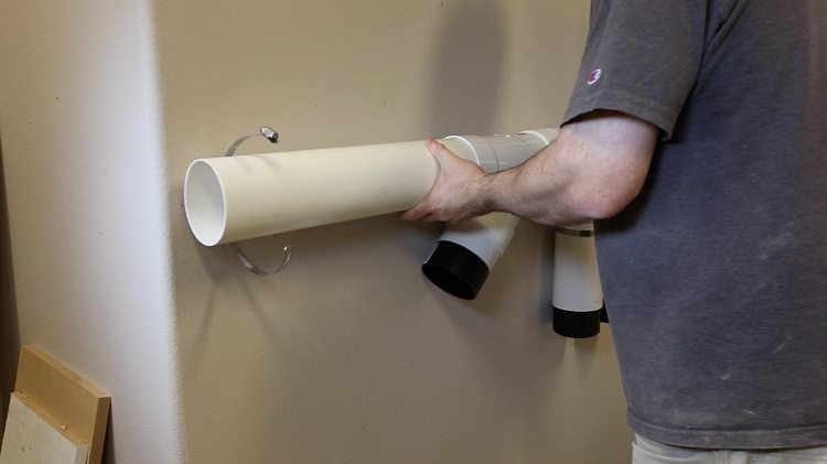 L'installation des conduits n'est pas particulièrement difficile. L'assemblage initial des éléments est effectué sur une table ou un sol, après quoi l'assemblage est fixé au mur ou suspendu au plafond. L'assemblage des composants en une seule conception est effectué selon la méthode suivante: les raccords sont utilisés pour connecter des sections droites et les éléments façonnés sont interconnectés par des mamelons. Cette méthode est appelée «couplage du mamelon». Les composants façonnés sont fabriqués en coupant des pièces de la longueur requise à partir de sections droites. La nécessité de créer ces éléments par cette méthode réside dans le fait que la face des systèmes de ventilation a des tuyaux d'un diamètre légèrement plus grand de sorte que les canaux directs y pénètrent très étroitement. Par conséquent, pour joindre, par exemple, une sortie et un té, un court tuyau droit est nécessaire. Après la connexion finale des éléments, il est caché à l'intérieur des buses.
