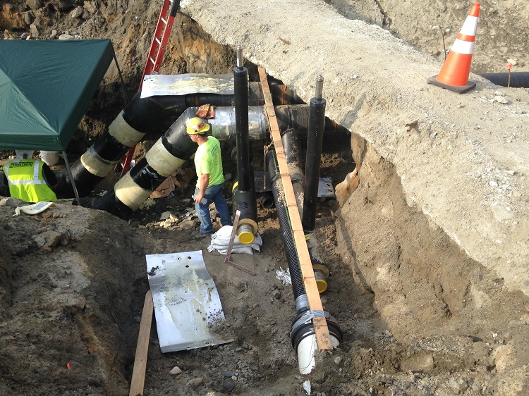 La pose de réseaux de chaleur sous terre nécessite l'installation de tunnels ou de chambres spéciales qui permettent l'inspection et la réparation des tuyaux