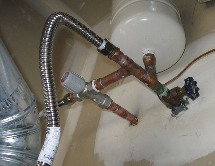 En utilisant une connexion à soufflet, il est facile de connecter un geyser ou une chaudière au réseau d'alimentation