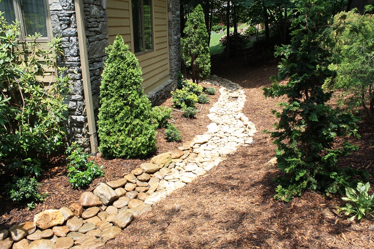 - argile ou pierres, ou dalles de pavage. L'aménagement d'une telle zone aveugle nécessitera un travail considérable, mais fournira un attrait esthétique;