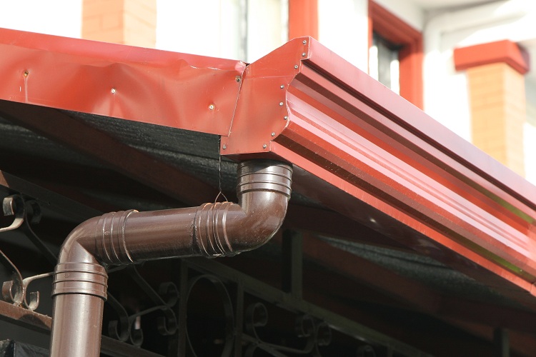 Cependant, le plus souvent, la gouttière est fixée aux chevrons. Le tuyau de drainage dans ce cas est situé très près du mur, à savoir à une distance de 3 à 5 cm. Avec cette disposition du drain, pour sa connexion avec l'entonnoir de drainage, dans tous les cas, vous devrez utiliser deux genoux de drainage.