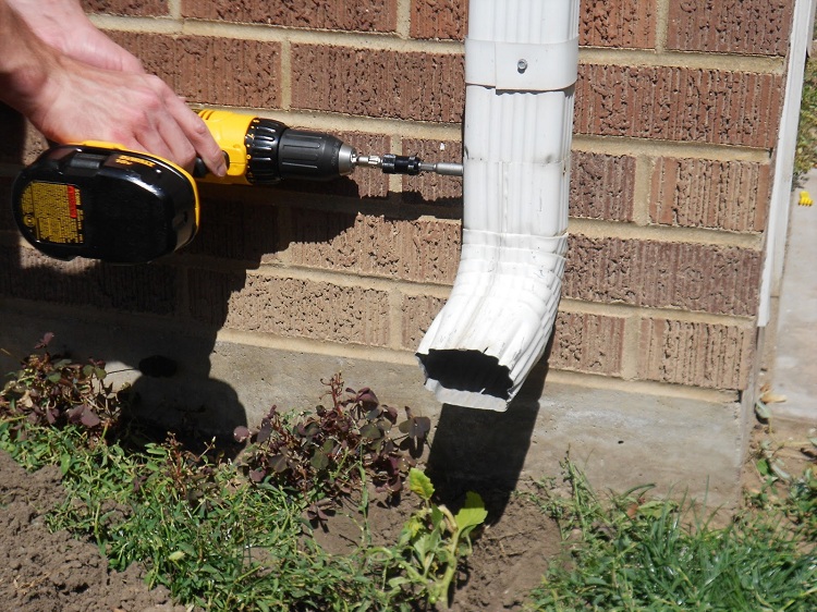 - Une gouttière située dans un plan vertical se connecte au deuxième coude et est fixée avec des pinces. L'installation ultérieure du drain est effectuée à l'aide de raccords spéciaux - raccords.
