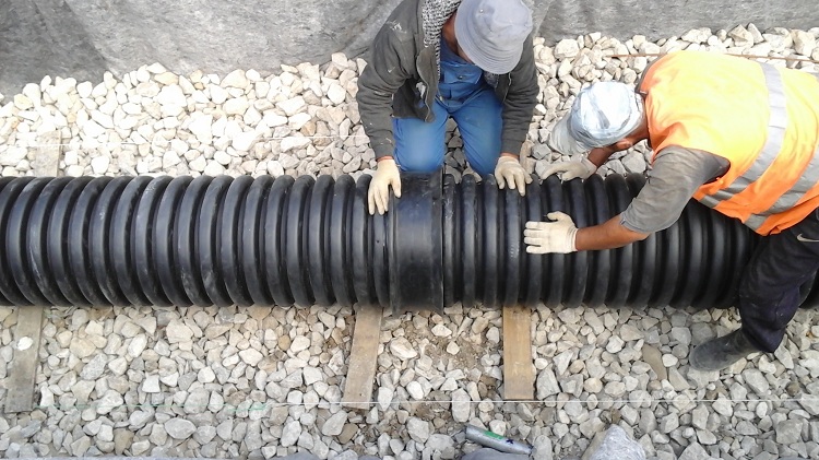 Pour les systèmes d'égouts extérieurs à forte charge, des tuyaux à double paroi en polyéthylène sont utilisés.