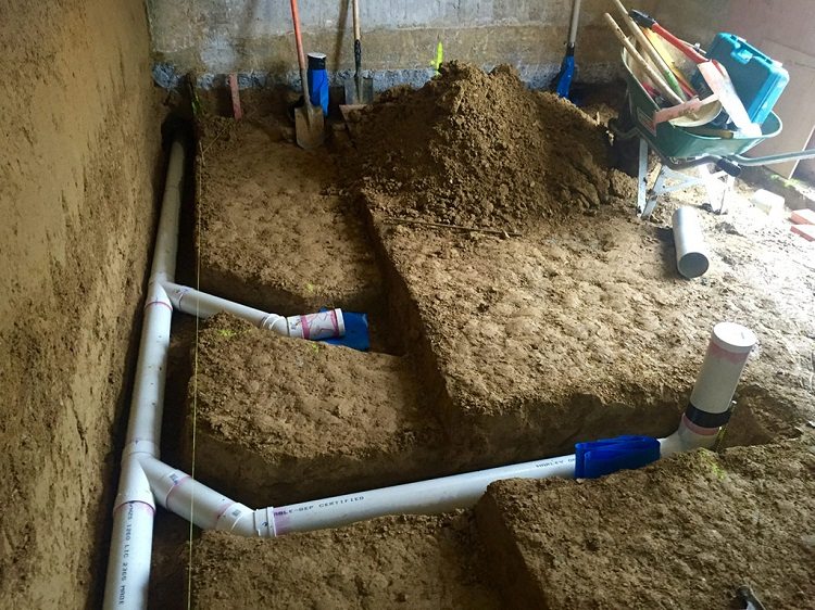 - l'incapacité de creuser des tranchées à un angle pour assurer la gravité des eaux;