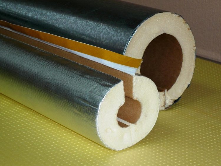 Le polyéthylène moussé, en plus de bonnes propriétés d'absorption acoustique, empêche la formation de condensat sur les tuyaux, ce qui les protège de l'apparition de champignons et de moisissures. Son défaut est la fragilité. Vous pouvez utiliser un ruban insonorisé spécial qui s'enroule aussi étroitement que possible autour du tuyau. Les matériaux en rouleau sont largement utilisés, mais leurs caractéristiques sont sensibles aux influences de l'environnement et les espaces d'air ne devraient pas apparaître lors de leur emballage entre les couches.
