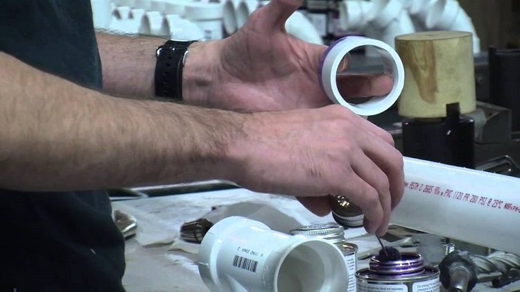 - avec une brosse ou un tampon sur les extrémités de tuyau préparées, la colle spéciale susmentionnée est appliquée. Ensuite, les tuyaux sont insérés les uns dans les autres. La preuve que cette opération est effectuée correctement est l'apparition d'un rouleau de colle à la jonction.