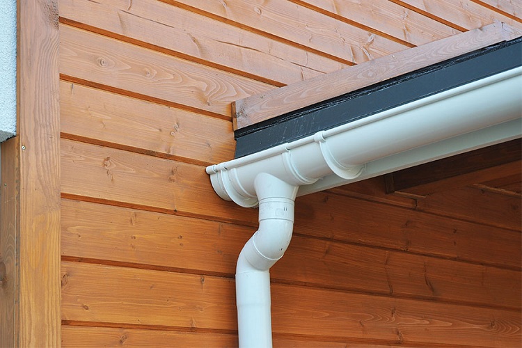 Attention! Les gouttières sont faites avec une pente de sorte que l'eau arrive aux entonnoirs - au moins 2-3 cm par mètre. Les tuyaux de petit diamètre semblent plus esthétiques, mais ils peuvent ne pas être en mesure de faire face au volume d'eau qui s'écoulera du toit pendant une douche.