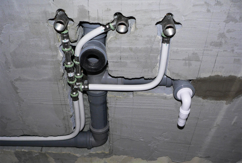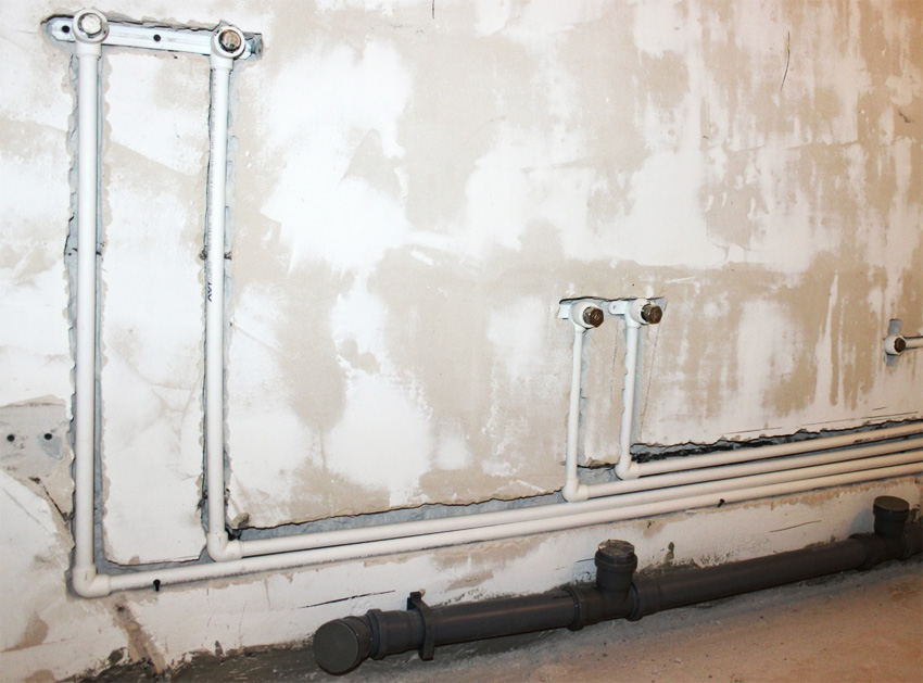 Remarque! Les experts ne recommandent pas la pose des communications d'eau et d'égout en utilisant la méthode cachée (dans les murs). Cela est dû au fait qu'avec leur fuite, il est beaucoup plus difficile de déterminer la localisation de la panne, et leur réparation nécessite le démontage du mur.