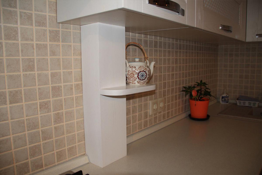 Le tuyau de gaz, situé directement dans le coin de la pièce, se déguise encore plus simplement, car seuls deux plans doivent être fermés pour le masquer. Cela permettra non seulement d'économiser du matériel, mais également d'accélérer le processus lui-même.