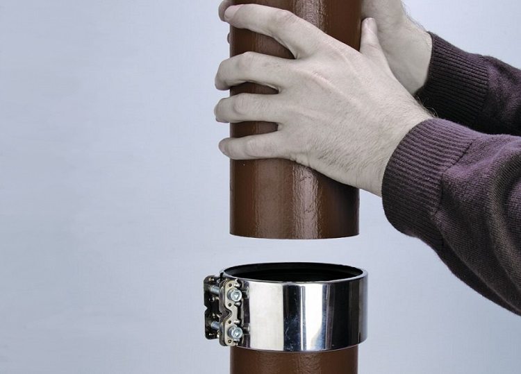 Important! L'apparition de fluctuations de température dans le système d'égout peut déformer le joint.Par conséquent, avant d'installer le brassard, il doit être traité avec de la graisse au silicone.