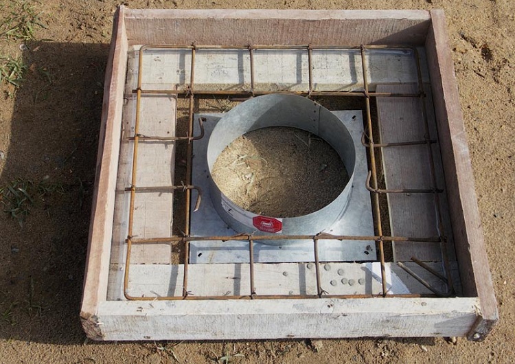 - découpez un trou rond dans la base de brique. Sa taille doit être approximativement égale à la moitié de l'épaisseur de la brique. Et le diamètre dépasse légèrement la valeur de ce paramètre de la partie intérieure du produit sandwich;