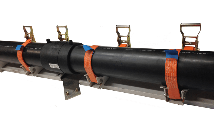 Dans le soudage par électrofusion, les tuyaux sont souvent fixés avec des sangles afin qu'il n'y ait pas de déplacement pendant le chauffage