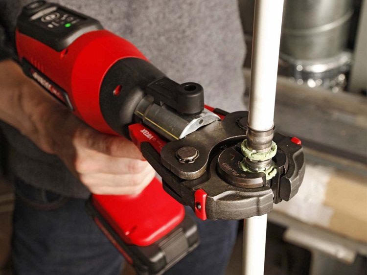 Un tel outil de presse pour tuyaux métal-plastique est entraîné par un entraînement hydraulique ou électrique, il ne nécessite donc pas l'utilisation de la force musculaire par l'opérateur. Cela vous permet d'augmenter la vitesse et le volume de travail effectué. Le coût de l'outil est beaucoup plus cher que manuel, donc l'acheter pour les besoins domestiques n'a pas de sens.