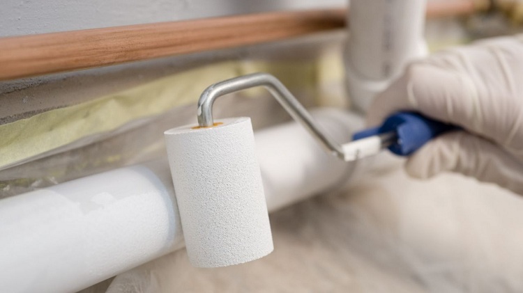 - appliquer un mélange protecteur sur une surface complètement sèche. Cela peut être fait avec un pistolet, un rouleau ou une brosse. Pour éviter la formation de condensation sur les tuyaux d'eau froide, il est recommandé d'appliquer jusqu'à 5 couches d'agent chimique. Effectuez cette procédure uniquement après le séchage complet de chaque couche précédente;