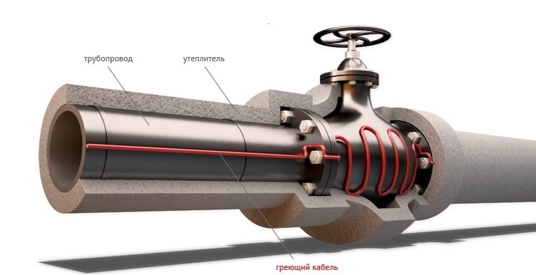 La base du travail câble chauffant pour le chauffage de tuyaux la conversion de l'énergie électrique en chaleur est réalisée. Il s'agit d'un conducteur dont la température augmente et est donné à l'environnement au passage du courant. Le câble se compose de deux conducteurs en cuivre (section 1,2 mm2), d'un élément conducteur autorégulateur, de deux couches isolantes avec une tresse de cuivre entre eux.