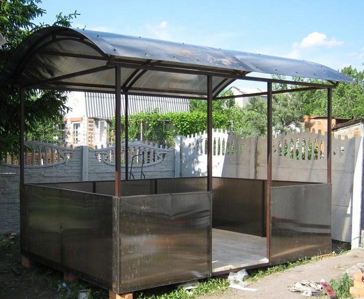 Les parcelles privées de chalets ont longtemps été pratiquement pas utilisées pour la culture de différentes cultures en été. Aujourd'hui, la plupart des propriétaires de parcelles de terrain cherchent à en faire un lieu de détente et de repos, étant arrivés où après une dure journée, vous pourrez vous détendre ou tout simplement être en silence. À ces fins, une tonnelle confortable à partir d'un tuyau profilé est souvent érigée dans la cour.