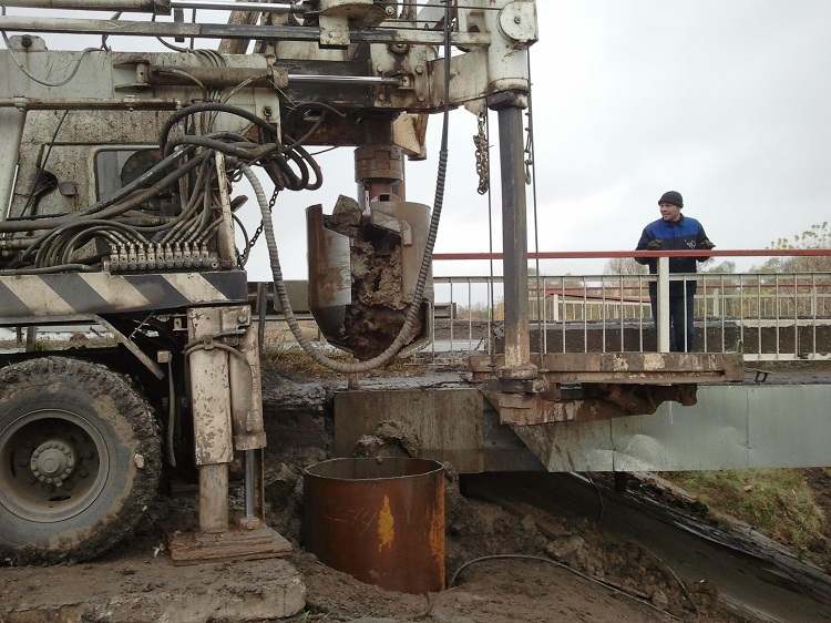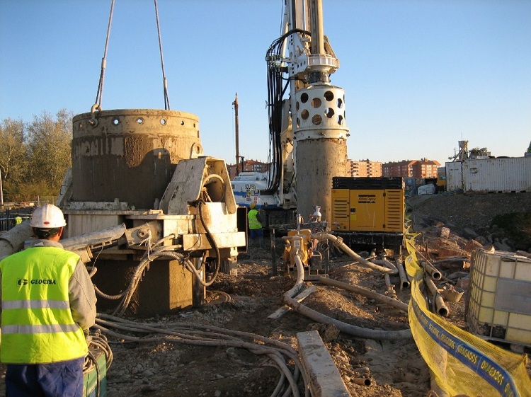 Nettoyage obligatoire du trou de forage pour les pieux des sols en ruine à la fin de cette étape des travaux. Un foret spécial ou «barre Kelly» est utilisé avec la position des lames ayant une fonction de préhension.