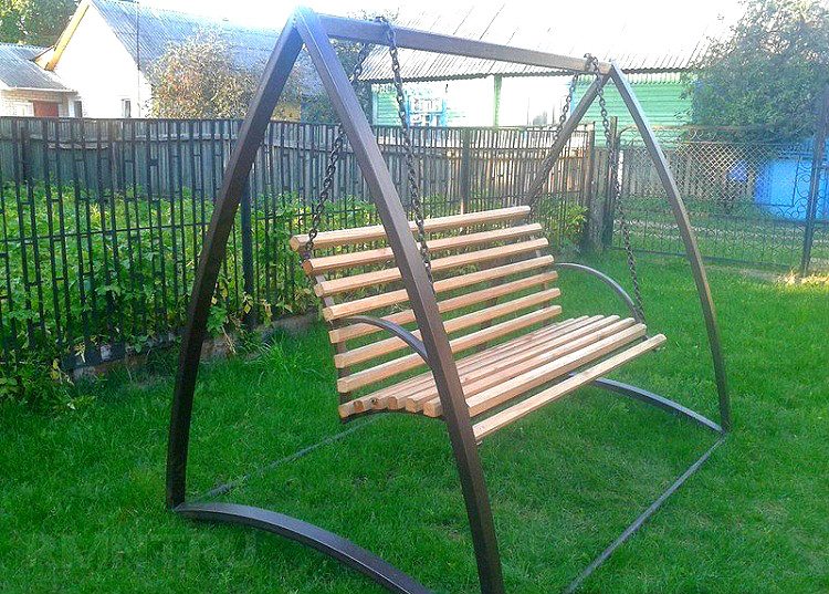 Les cloisons, ainsi que le cadre du siège, peuvent être fabriqués à partir d'un tube profilé d'une section plus petite de 15–25 mm, ainsi que de suspensions qui seront rigides, avec un balancement en douceur sans oscillation. Les suspensions peuvent toujours être constituées de chaînes, il est pratique de les ajuster en longueur, il n'y aura pas de freinage avec de petits balancements, et les fortes balancements seront éteints par le frottement des maillons, cependant, le banc se déplacera dans toutes les directions.