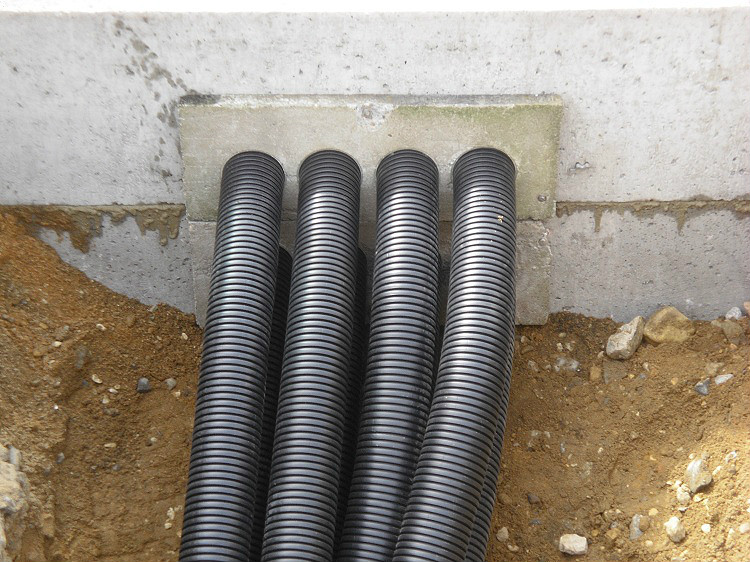 Lors du câblage électrique dans une chape de sol en ciment ou dans un mur de briques, une gaine de protection noire lisse est utilisée.