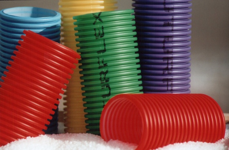 - tubes ondulés flexibles, y compris avec des murs renforcés (en raison de leur flexibilité, ils peuvent protéger le fil de câble de divers équipements mobiles, et la couche renforcée augmente leurs caractéristiques techniques);