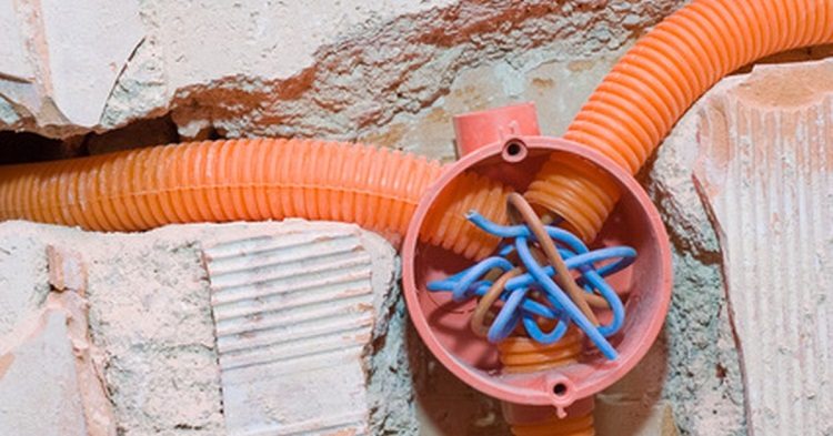 - le câblage électrique dans un tuyau ondulé mural est effectué au stade final. Tout d'abord, le tuyau doit être fixé, puis versez la solution et laissez la surface se former.