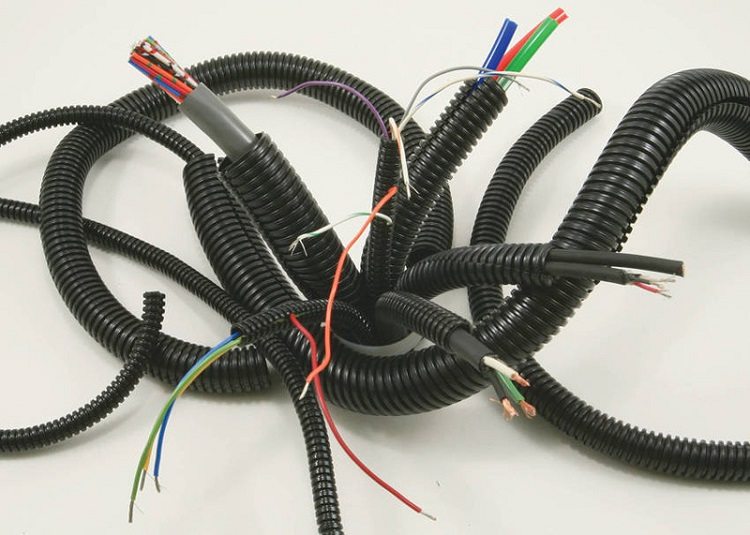 Tuyau en PVC ondulé pour câble. Les caractéristiques de résistance de ces produits sont à un niveau assez élevé. Pour leur production, une modification spéciale du PVC est utilisée, qui contient des additifs spécifiques. Lorsqu'un court-circuit se produit, le tuyau ne brûle pas, ne supporte pas la combustion, mais fond seulement. La fonte obtenue au cours de ce processus isole la zone endommagée, empêchant ainsi la propagation du feu.