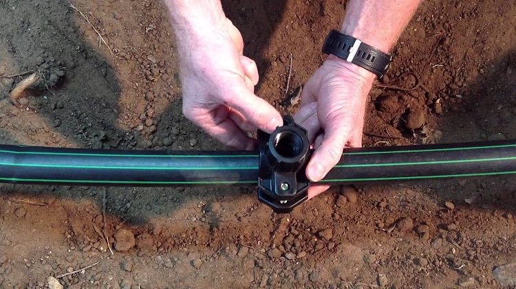 Ces selles sont montées sur le tuyau en PEHD avec des boulons et des écrous, puis soudées de manière électrosoudée.