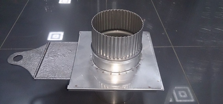 Les produits de barrière horizontale peuvent également être installés sur des cheminées métalliques. Dans la plaque, qui prolonge et chevauche une partie de la cheminée, au stade de la production, des trous sont faits ou une partie de la plaque elle-même est manquante. Dans le cas de l'autoproduction de l'élément coulissant pour la structure de la cheminée, vous devez absolument vous rappeler de faire des trous dans la plaque, sinon les règles de sécurité incendie ne seront pas respectées.