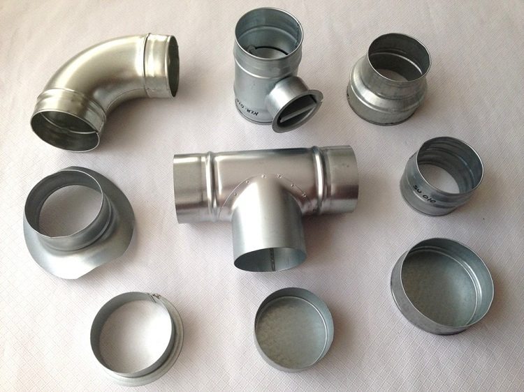 Les sections de raccordement du conduit d'air sont fermées par des éléments qui peuvent avoir une forme différente. Parfois, la bonne organisation des conduites de ventilation peut inclure un nombre de raccords égal au nombre de tuyaux utilisés. Pour différents tuyaux de ventilation pour l'extraction de l'acier galvanisé, des éléments de différentes sections transversales - rondes et rectangulaires - sont produits.