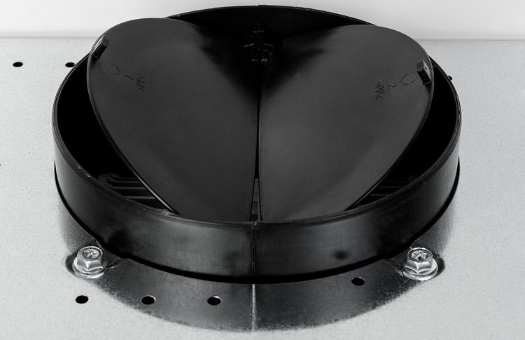- Clapet anti-retour. Vous permet de définir la direction souhaitée du flux d'air. Le plus souvent, il est utilisé en ventilation forcée avec le ventilateur éteint pour empêcher l'air de pénétrer dans la rue.