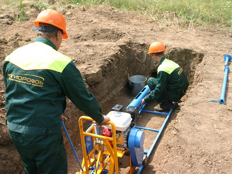 Les vérins créent une force qui est transmise au tuyau et pénètre l'extrémité ouverte dans le sol. Lorsqu'elle pénètre dans le sol, une colonne de terre s'accumule à l'intérieur de la pièce. Son retrait est effectué à l'aide de pelles (à manche long et court) et de dispositifs à percussion, qui sont basés sur la pneumatique.