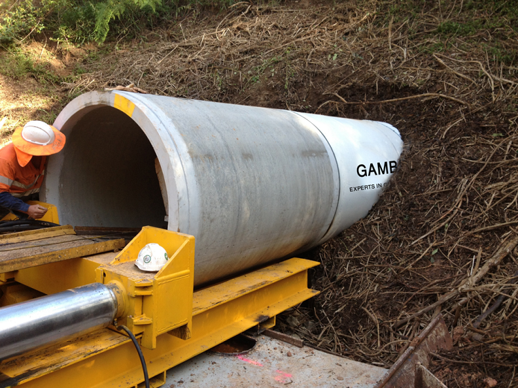 Dans ce cas, des vérins hydrauliques sont utilisés pour créer une force suffisante. Ils sont installés symétriquement sur toute la section transversale du tuyau. Les sols dans lesquels ces travaux peuvent être réalisés appartiennent aux groupes I - IV (argile, limon, sable, etc.). Le diamètre des tuyaux utilisables avec cette méthode varie de 600 à 1720 mm. La distance de pose ne dépasse généralement pas 100 m.