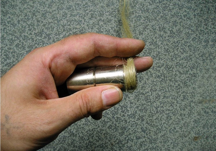 - Enroulez la fibre dans le sens des aiguilles d'une montre autour du filetage à droite. Si le fil est gaucher, alors naturellement dans la direction opposée.