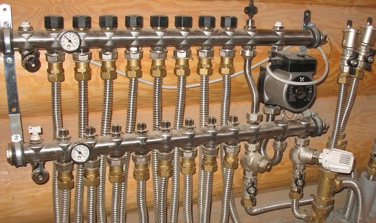 La flexibilité de l'acier inoxydable ondulé lui permet d'être utilisé dans les systèmes de chauffage par le sol à la fois pour la pose sous la chape et pour le montage du collecteur