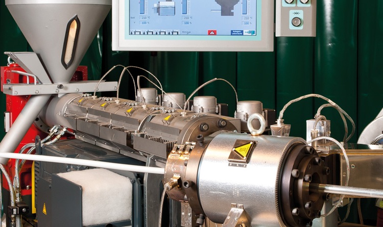 - De l'extrudeuse (une machine qui transforme les matières premières en polymère en une masse fondue homogène), vient la coque interne du produit obtenu par extrusion.